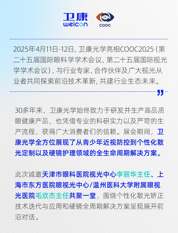 卫康光学COOC2025圆满收官|聚焦视光领域,共筑清晰未来